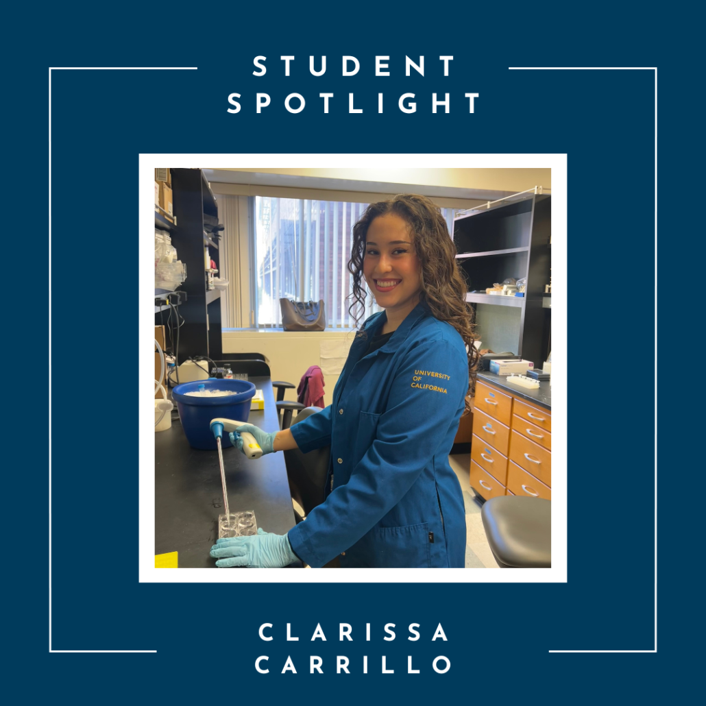 Meet Clarissa Carrillo! Clarissa is a fourth-year Biology major looking to pursue a PhD and aspire to conduct research in the field of dermatology to contribute to a better understanding of skin diseases and the development of new treatments. She has been involved in the Program for Excellence in Education and Research in the Sciences (PEERS), the URC-Sciences Summer Program, and the Louis Stokes California Alliance for Maximizing Potential (CAMP). Clarissa credits undergraduate research to having a significant impact on her career path and has motivated her to pursue graduate school.