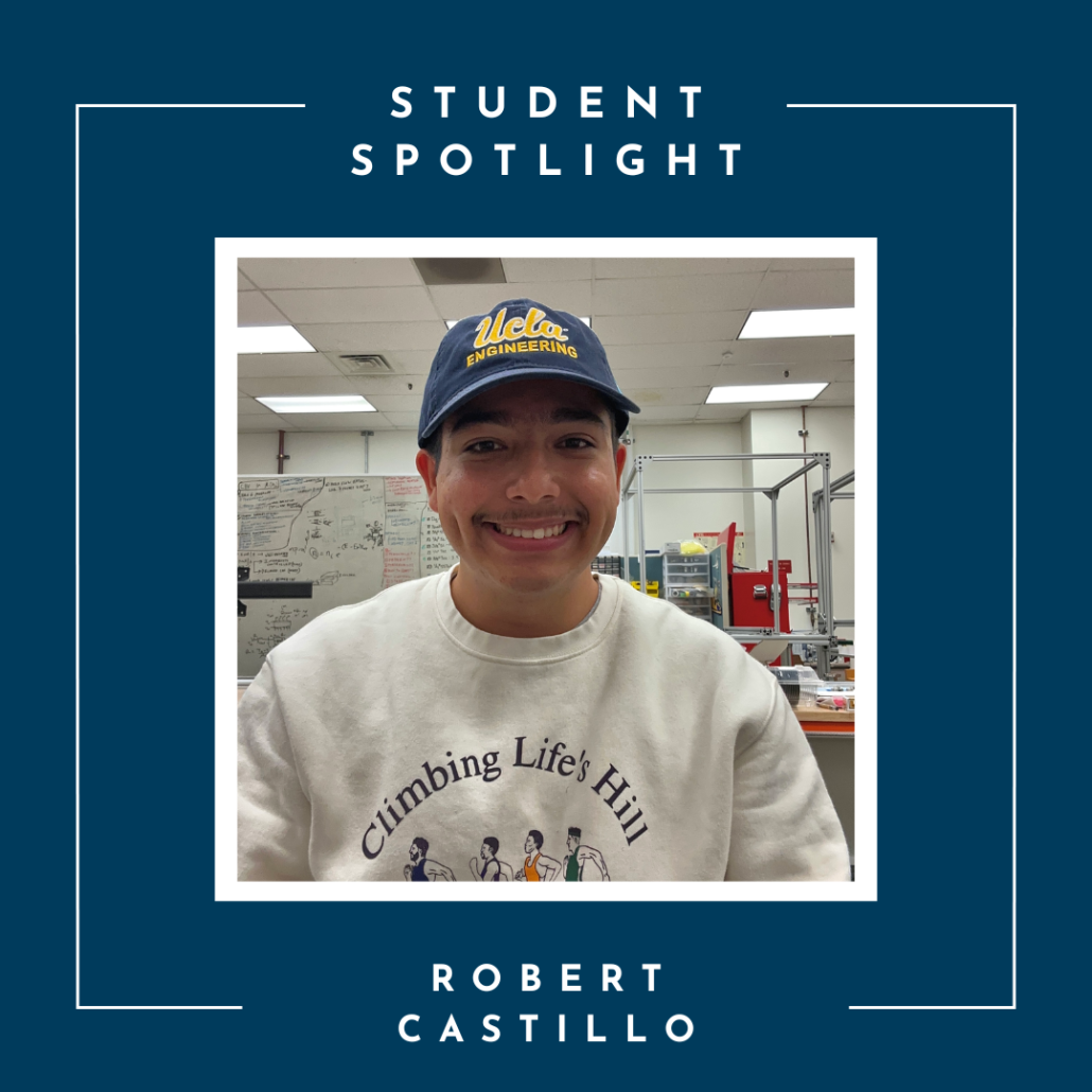 Meet Robert Castillo! Robert is a third-year Mechanical Engineering and Education Studies double major looking to get a PhD in Nuclear Engineering to become a professor. He was previously involved in the Summer Undergraduate Research Program, hosted by the Henry Samueli School of Engineering and Applied Science, and the Summer Programs for Undergraduate Research, hosted by the Undergraduate Research Centers. Currently, Robert is a member of UC LEADS and is conducting research on the Solar Methane Pyrolysis Project, specifically designed to manufacture the next generation of graphitic carbon-carbon composites, as part of the Nano Transport Research Group under the direction of Dr. Timothy S. Fisher.