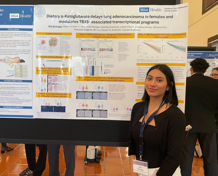 Thanks to outreach from PEERS, I learned about an open position for an undergraduate research assistant in the Scafoglio Lab. Since the summer of 2024, I have been an undergraduate researcher here, where we study lung cancer, specifically lung adenocarcinoma. Throughout the majority of my time in the Scafoglio Lab, I have been assisting my mentor, Martín Alcaraz Jr., with his project investigating the sex-dependent effects of alpha-ketoglutarate on lung adenocarcinoma.